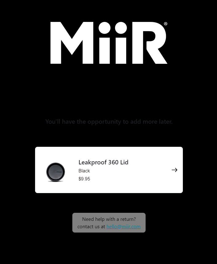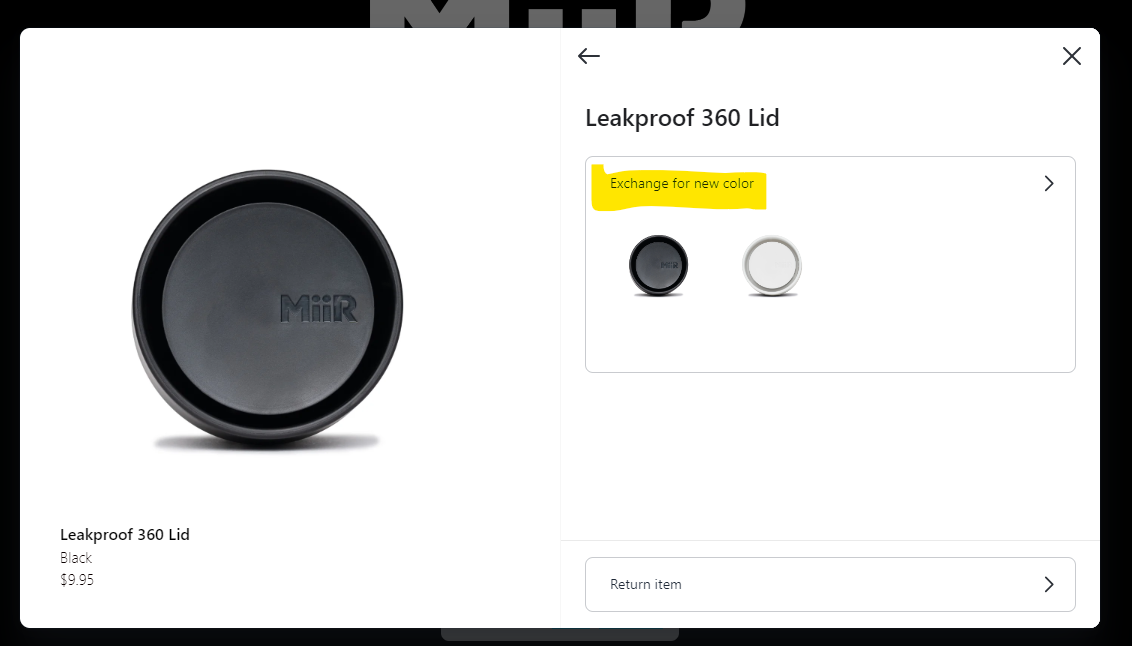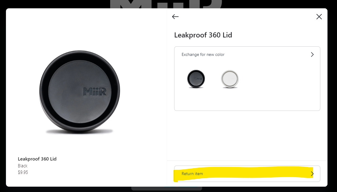 To initiate an exchange, go to miir.com/returns. Enter your order number and shipping zip code to pull up the order you are returning.